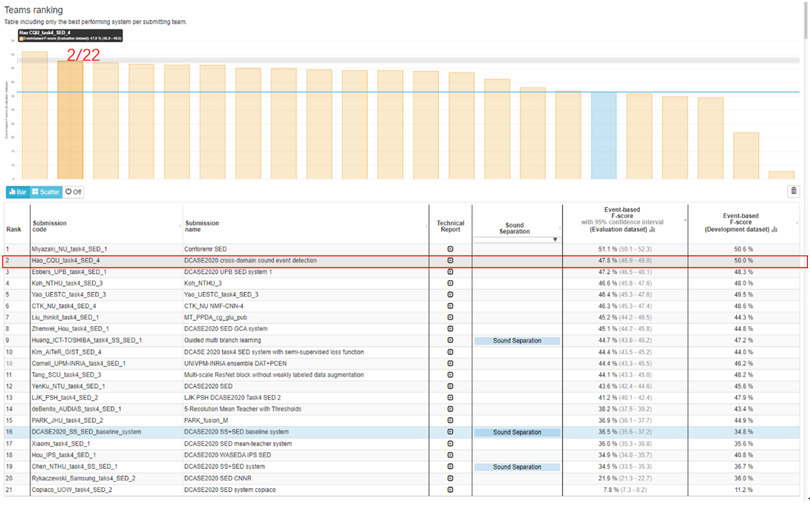 近日,在第六届国际权威声学场景和事件检测及分类竞赛 (IEEE AASP Challenge on Detection and Classification of Acoustic Scenes and Events, DCASE 2020) 中,威廉体育williamhill杨利平副教授研究小组参加了室内环境声音事件检测与分离(Sound Event Detection and Separation in Domestic Environments, Task 4)任务的声音事件检测竞赛,...[查看详情]
