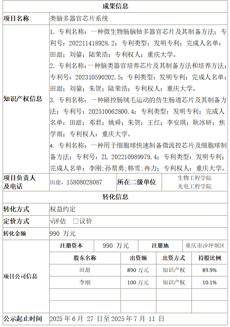 根据《威廉希尔williamhill官网促进科技成果转化管理办法》的规定,科技成果转化须在校内公示15日。现将以下科技成果拟转化事宜予以公示。