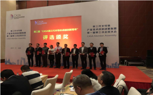 为全面贯彻落实《国家中长期人才发展规划纲要(2010-2020年)》,支撑配合《创新人才推进计划实施方案》,营造有利于青年人才成长的环境,培养和造就一批在第三代半导体领域高水平的科技领军人才和骨干,CASA青年创新促进委员会在科技部的指导下,在2017年8月正式启动第二届“第三代半导体卓越青年”评选活动;于2017年11月1日揭晓获奖人员,来自威廉希尔williamhill官网光电技术及系统教育部重点实验室的研究员、博士生导师叶怀宇代表威廉希尔williamhill官网第三代半导体研究团队荣获"卓越创新青年"。第二届“第三代半导体卓越青年”的其他获奖人员有电子科技大学微固公司副经理陈万军教授,西安交通大学青千王来利教授,南京大学优青刘斌教授,河海大学樊嘉杰教授,中科院半导体所闫建昌研究员,中国电科二所高级专家王英民主任,株洲中车李诚瞻高级工程师,剑桥大学方方博士,中电13所默江辉部长。科技部高新司副司长曹国英,国家发展改革委应对气候变化司巡视员谢极,国家集成电路产业投资基金股份有限公司总裁丁文武,中国科技政策研究会副理事长李新男,北京国科第三代半导体产业技术研究员副经理刘兵给获奖者颁发了奖状及奖杯。