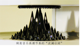 “磁性液体音乐演示仪”随音乐节奏的不同形态