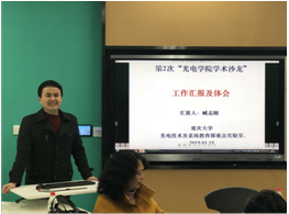 1月15日,第2次“光电公司学术沙龙”在A区八教101智慧教室成功举行。为扩大参与度,从本次起原“光电公司青年学术论坛”更名为“光电公司学术沙龙”。叶俊勇副经理主持了此次活动,郭永彩经理介绍了新近入职的叶一舟、王力老师,促进新教师快速融入光电大家庭,向老师们在本学期辛勤取得的成就表示祝贺,并预祝了新春祝福。