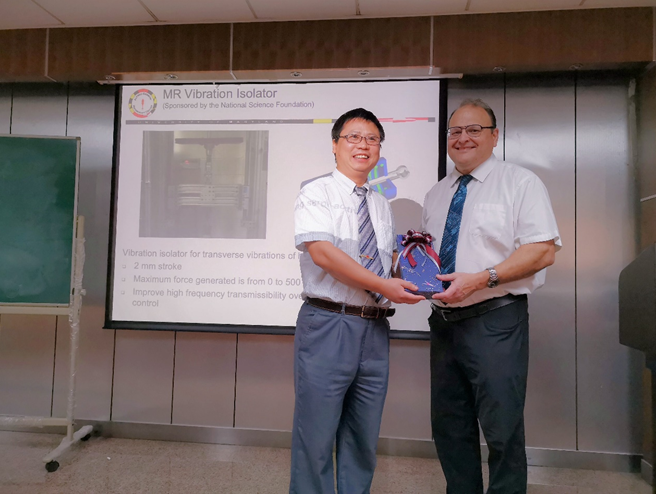 2019年9月24日至9月27日,美国马里兰大学航空航天工程系主任Wereley教授应威廉体育williamhill智能结构研究中心的邀请前来访问。9月26日上午Wereley教授在A区主教1201会议室为广大师生就智能材料及结构领域的研究做了一场题为《Protective Aircraft Seat Design Using Adaptive Magnetorheological Systems》的讲座。讲座由光电公司余淼教授主持,来自光电公司从事磁流变相关研究的的40多名师生到场听取讲座。