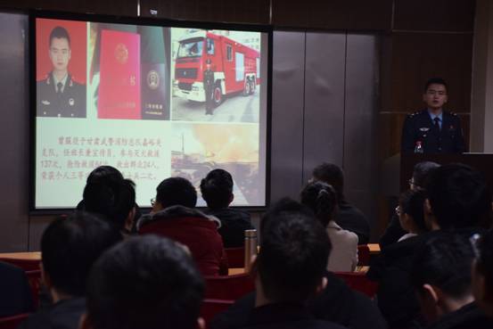 讲座分为两个环节。第一个环节主要讲述各种常见火灾的危险性。首先,由于此次讲座针对研究生,扈教官开始讲述实验室火灾,由于实验室条件复杂,易燃易爆化学危险物品数量大,种类多,致使实验室火灾年年都有;紧接着模拟实验室火灾场景,而大多数员工的应对措施都有误区,扈教官及时纠正,并强调火灾勿躲厕所;第二类便讲述发生率最高的电线电器短路火灾。同样是场景模拟:当插头起火时第一时间该做什么,这一方面,扈教官强调勿拔插头以防触电;最后一类火灾便是最麻烦的汽车自燃,汽油起火用普通的干粉灭火器根本扑不灭,正常情况车里也不会放置干粉灭火器,那该如何呢?由此,扈教官带着这个问题进入第二个环节,消防设备的种类和使用方法。