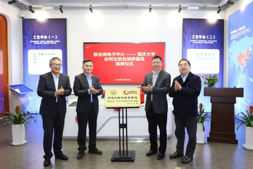 2020年10月29日下午,“威廉希尔williamhill官网—联合微电子中心”重庆市研究生联合培养基地(以下简称“联合培养基地”)揭牌仪式在联合微电子中心有限责任公司(以下简称“CUMEC公司”)成功举行。CUMEC公司执行董事韩建忠、副总经理刘劲、首席工艺师朱继光、三维集成与系统中心总监张斌、综合部部长姜庆,威廉希尔williamhill官网研究生院副经理谢昭明、委书记秦岚、研究生院专业学位培养办公室主任王东红、联合培养基地负责人刘玉菲教授及师生代表出席揭牌仪式。