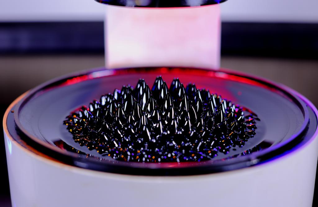 磁流体演示仪是原创性科普展品与科技文创产品,具有多项发明专利。优秀的科普展品应当具有丰富的互动功能,以对科学现象和原理提供直观的、生动的、趣味性的深度体验和理解。磁流体演示仪巧妙地通过控制磁流体的磁致相变效应,实现对音乐、语音、面部表情以及音乐的实时模拟与互动演示,多元化科普演示和互动模式可以提升用户的体验感与参与度。该设计集磁流体纳米智能材料、人工智能、精密磁场控制、音频/语音处理、电子技术、艺术设计为一体,将科学与艺术融合,可以向青少年和公众科普磁致相变效应、磁场“可视化”、音流学、电磁学等知识,提升大众对前沿基础科学的了解,尤其让青少年感受到科学的奥秘与艺术的魅力,为他们打开探索之门,种下创造力的种子。该展品可用于科技馆、大学/中学物理实验研究性教学仪器。同时,磁流体演示仪具有艺术观赏性高、互动模式多样的优势,后续将发展为高端科技文创产品。