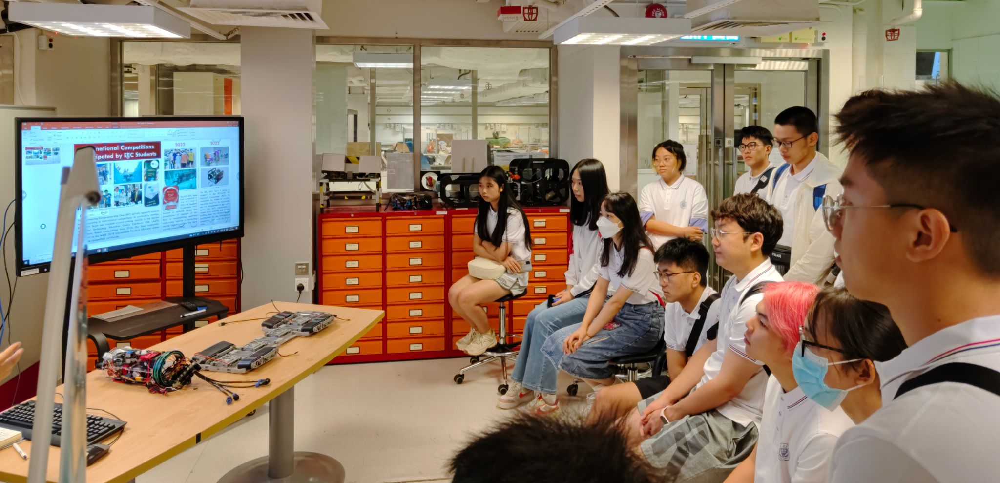 谭华耀教授首先介绍了香港理工大学电子电力工程系(Electrical & Electronic Engineering,EEE)以及工程创业俱乐部的基本情况。靳伟教授给同学们带来了“光纤传感器以及气体检测”精彩课程。黄冬梅博士介绍了团队在“高性能扫频激光器”方向的最新成果。刘伯涛教授、陈文博士、余长源教授、肖银博士、吴欢博士、叶青青博士等老师也带来了精彩的课程,或介绍了他们前沿的科研成果。李雨佳博士、曹玉龙博士、郑华博士等给同学们分享了自己在香港理工大学科研和学习的宝贵经验。最后,同学们又一起参观了香港理工大学EEE系的科研实验室,亲身感受到了这所国际化名校的科研气氛。