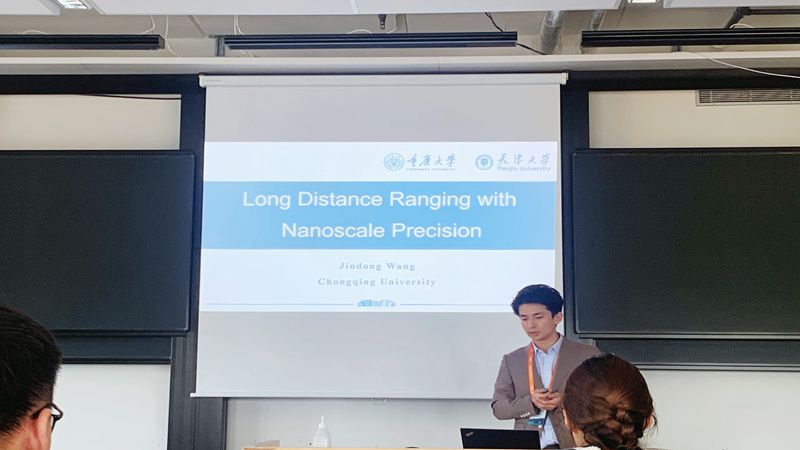 弘深博士后青年教师王金栋做了题为“Absolute Length Metrology with Nanoscale Accuracy using On-chip Microcomb”的邀请报告,介绍了课题组提出的基于片上孤子光梳的高精度测量技术。