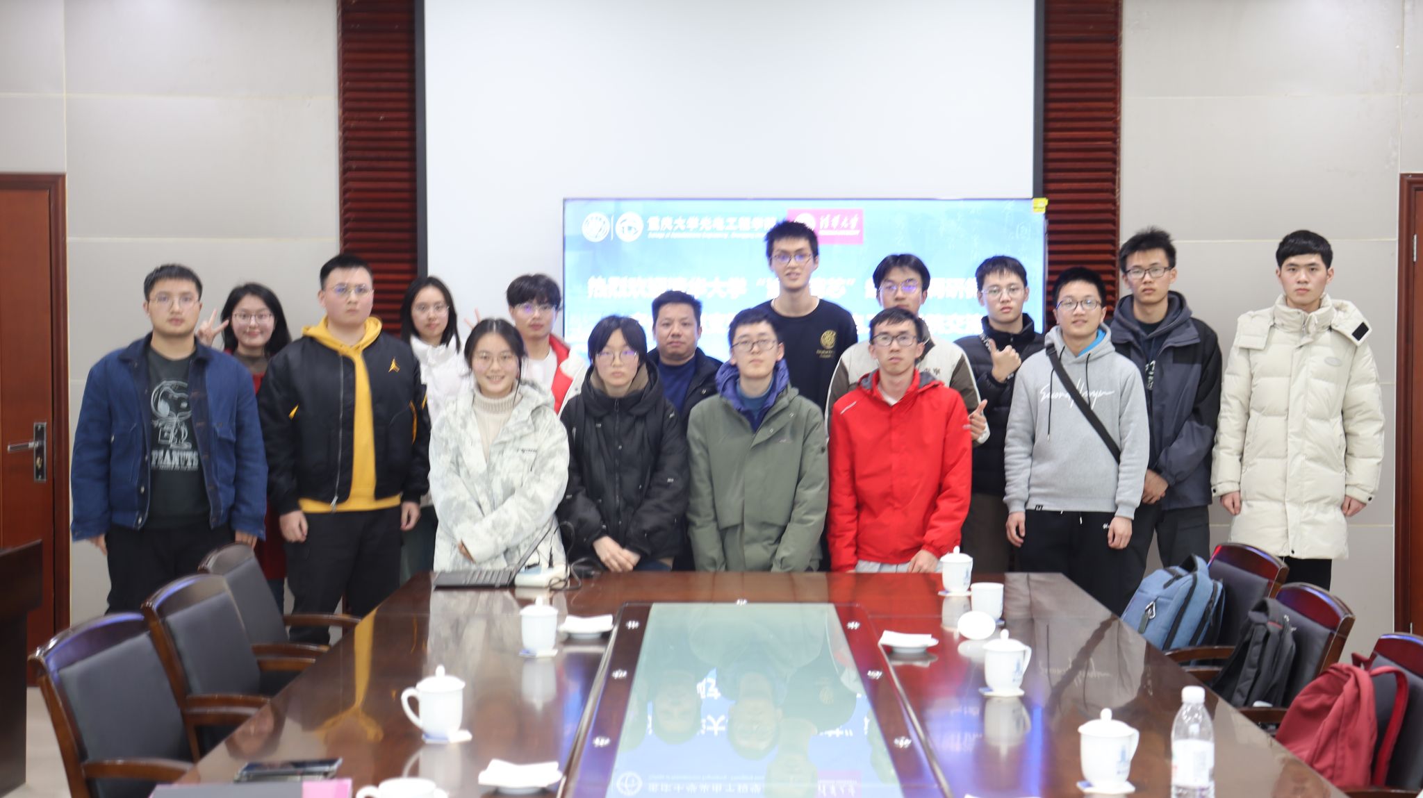 2024年2月23日下午,清华大学“渝见清芯”赴重庆调研微电子产业主题支队来到威廉体育williamhill开展社会实践。实践团谢煜东、申江泽等10名员工以及威廉体育williamhill副经理黄鸿,ICT中心刘丰林,青年教师代表杨利平、向进,学办主任陈涛和光电公司5位本科生代表参加了此次活动。