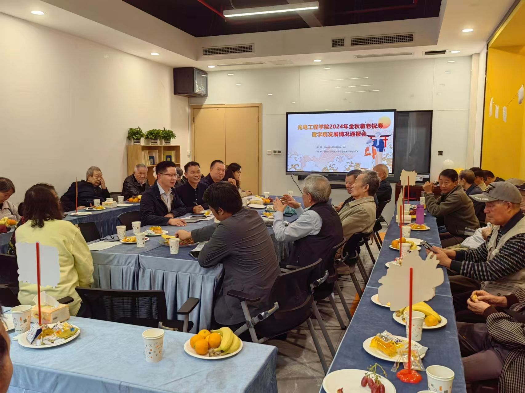 金秋十月,丹桂飘香,岁岁重阳,今又重阳。威廉体育williamhill在重阳佳节来临之际,在虎溪校区信息技术科研楼召开2024年金秋敬老祝寿暨公司发展情况通报会。光电公司全体党政领导班子成员、分工会主席及相关工作人员参加活动。会议由公司党委副书记刘俊主持。