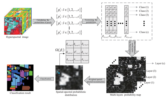 论文“Local Linear Spatial–Spectral Probabilistic Distribution for Hyperspectral Image Classification”以高光谱遥感图像中的空-谱相关性为切入点,提出了一种联合高光谱影像光谱信息和空间信息的分类方法,以探讨流形学习方法的理论机制以及高光谱影像空间信息在地物分类中的有效性。本文的研究成果可为城市规划土地用地、协调城市发展空间和改善区域生态环境提供要的理论依据和技术手段。