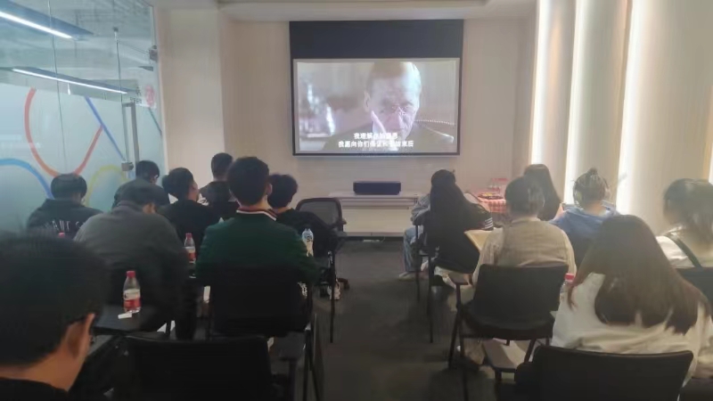工作人员为同志们详细介绍了峰米创新科技有限公司的企业文化、组织结构以及企业产品,引领同志们体验了使用峰米产品的模拟酒店、电影院以及沉浸式餐厅,介绍了公司新产品和技术类合作伙伴,同时解答了同志们十分关注的有关实习、校招的问题。参观结束后,同志们在公司电影院观看了爱国电影《我的1919》