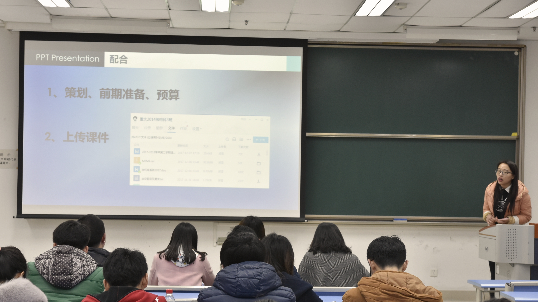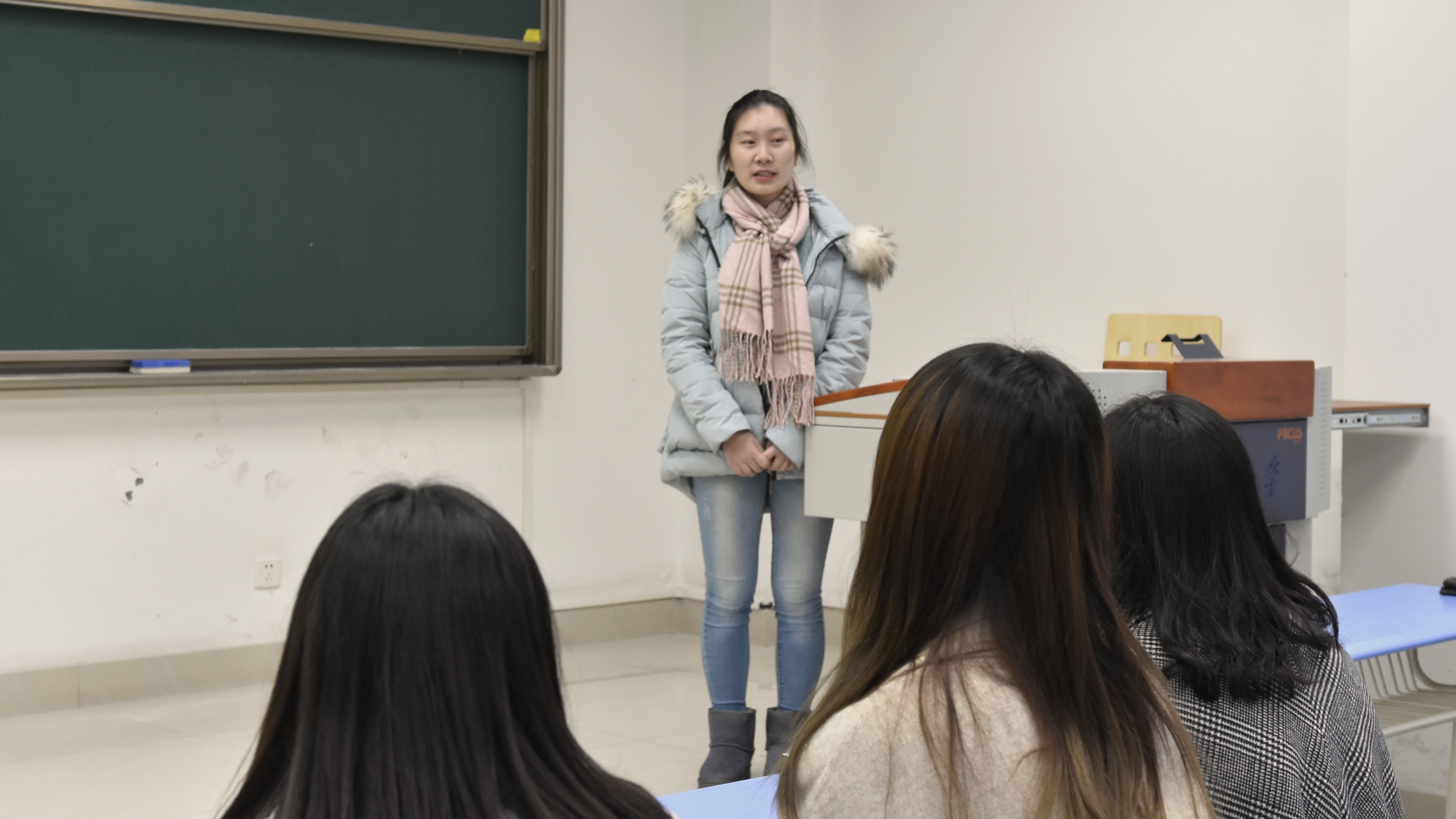 最后一位参选人是17级测控一班的周扬洋,她展示了学期以来的工作成果。她与每位同学都进行了心理沟通,并提交了相应的心理报告分析,同时也组织同学参加讲座、召开主题班会。她说她要更深入的了解同学的性格习惯。当罗莎老师问及印象最深刻的事情时,她谈到在面谈时问及了员工的性取向问题。