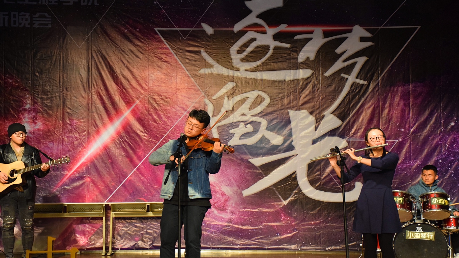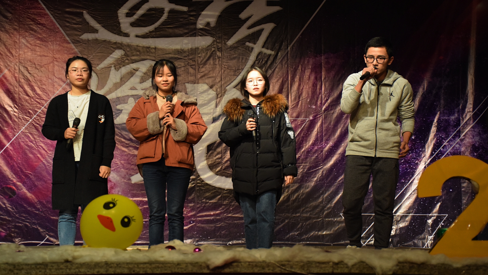 魔术舞蹈《梦舞时空》,四个小姐姐将魔术与舞蹈融合,引发现场的一阵阵欢呼喝彩。在热情过后,是温润入心的《朗读者》。在暖黄色的灯光下,缓缓打开信件,口舌间一言一句,饱含的是那些永驻心间的温存。让这种温存继续在会场流淌,大一乐队带来的歌曲《追光者》采用自己伴奏的方式,用最清脆的嗓音和最撩人心弦的乐器演奏,带动现场同学挥手同唱,温柔却震撼。接下来主持人邀请罗莎老师上台抽取一等奖,得奖的同学也是非常激动,现场热闹非凡。