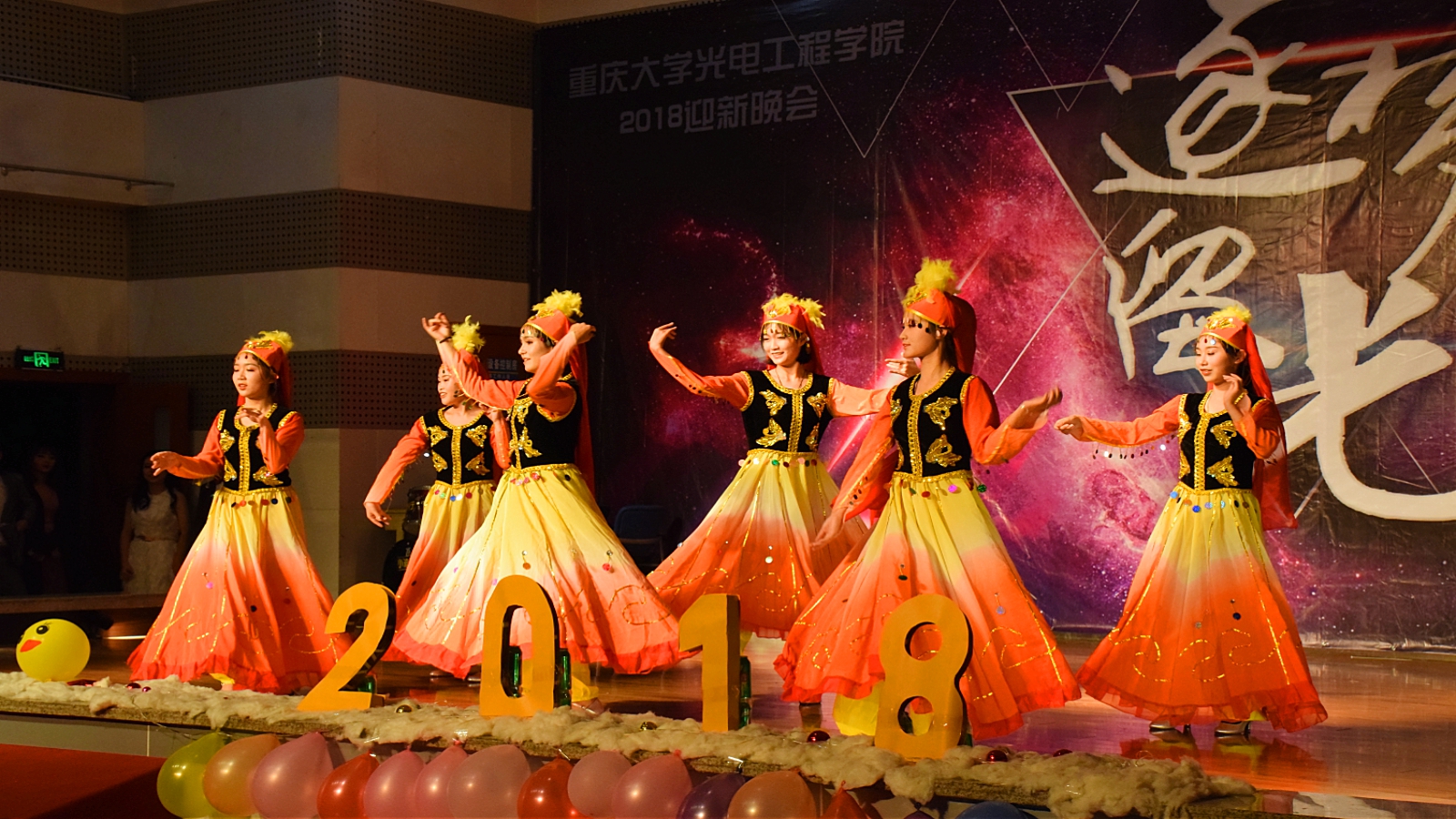 伴随着一曲《客从新疆来》,蒋晓红和五位同学带来了热情的新疆舞。欢快的节奏、曼妙的舞姿,一出场就吸引了大家的眼球,蒋晓红的参与让这个节目更具看点,成功地在开场引起全场欢呼。接着是由汤浙等同学带来的小品《海阔天空》,这不但是对春晚小品的完美呈现,更是对同学们青春梦想的唤起,告诉同学们,梦想掌握在我们自己手中。