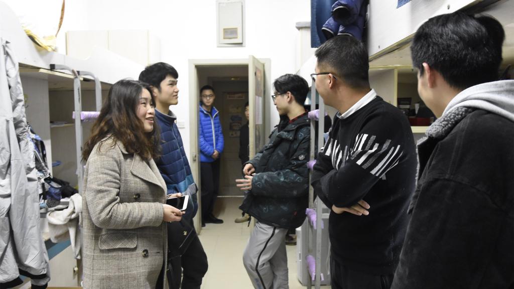 走访过程中,老师们对寝室的安全隐患进行了排查,对于寝室中有电线老化、脱落等现象,老师要求同学们及时报修;老师们强调,同学们要特别注意宿舍用水用电安全、防电信网络诈骗、校园网贷防范、食品安全、出行安全、消防安全等方面,注意提高应对突发事件的安全防范意识和能力。同时强调,当前正是期末复习的关键阶段,大家一定要诚信应考、遵守校纪校规,注重压力舒缓,避免出现考试作弊、晚归、夜不归寝、不假离校等行为。同学们纷纷表示,自己会注意遵守公司的规定。