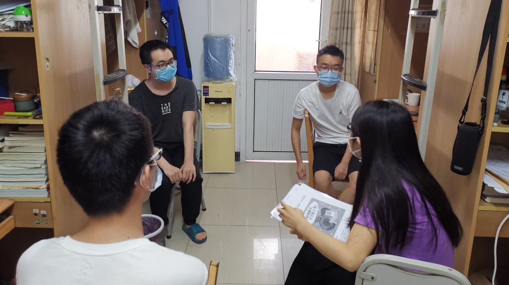 本科2016级辅导员周瑶琴走入宿舍,向相关同学一一宣传国家资助政策,督促同学们尽快完成生源地信用助学贷款网上毕业确认流程。