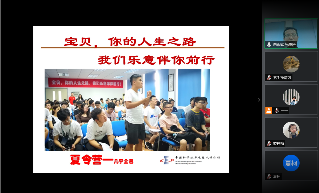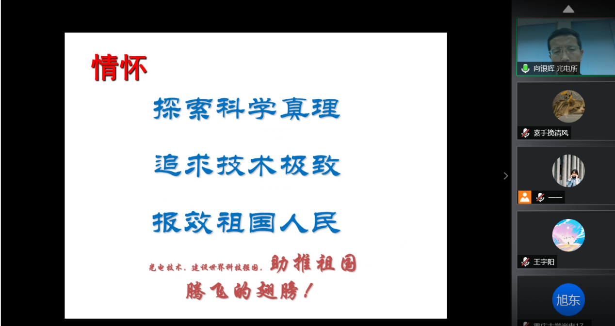 据向老师介绍,本次成光英才班面向光电17、18级各招收一个20人左右的班级,18级的宣讲会也与7月5日晚通过线上的方式跟18级的同学们进行了充分交流。经过此次线上宣讲会,相信同学们对自己的未来职业也有了更明朗的方向。有志加入成都光电所的同学也一定可以和光电所一起探索科学真理、追求技术极致、报效祖国人民,实现人生价值!