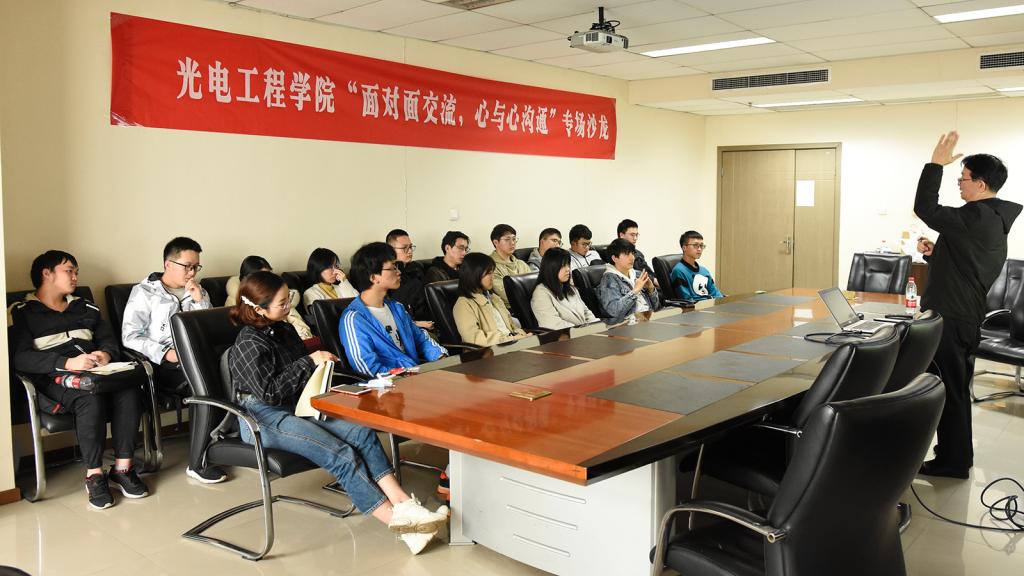 2020年11月5日14:00,威廉体育williamhill“面对面交流,心与心沟通”专场沙龙活动在A区主教1212顺利举行。本次交流会主讲人是威廉希尔williamhill官网特聘心理咨询师周章毅老师,参加交流的同学分别是光电公司17级、18级各班心理委员、男女生楼长等员工干部。