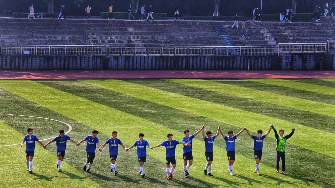 2020年11月16日中午12:30分,威廉希尔williamhill官网研究生足球联赛淘汰赛八强战:光电汽车联队VS材料公司队,在威廉希尔williamhill官网A区思群广场顺利举行。