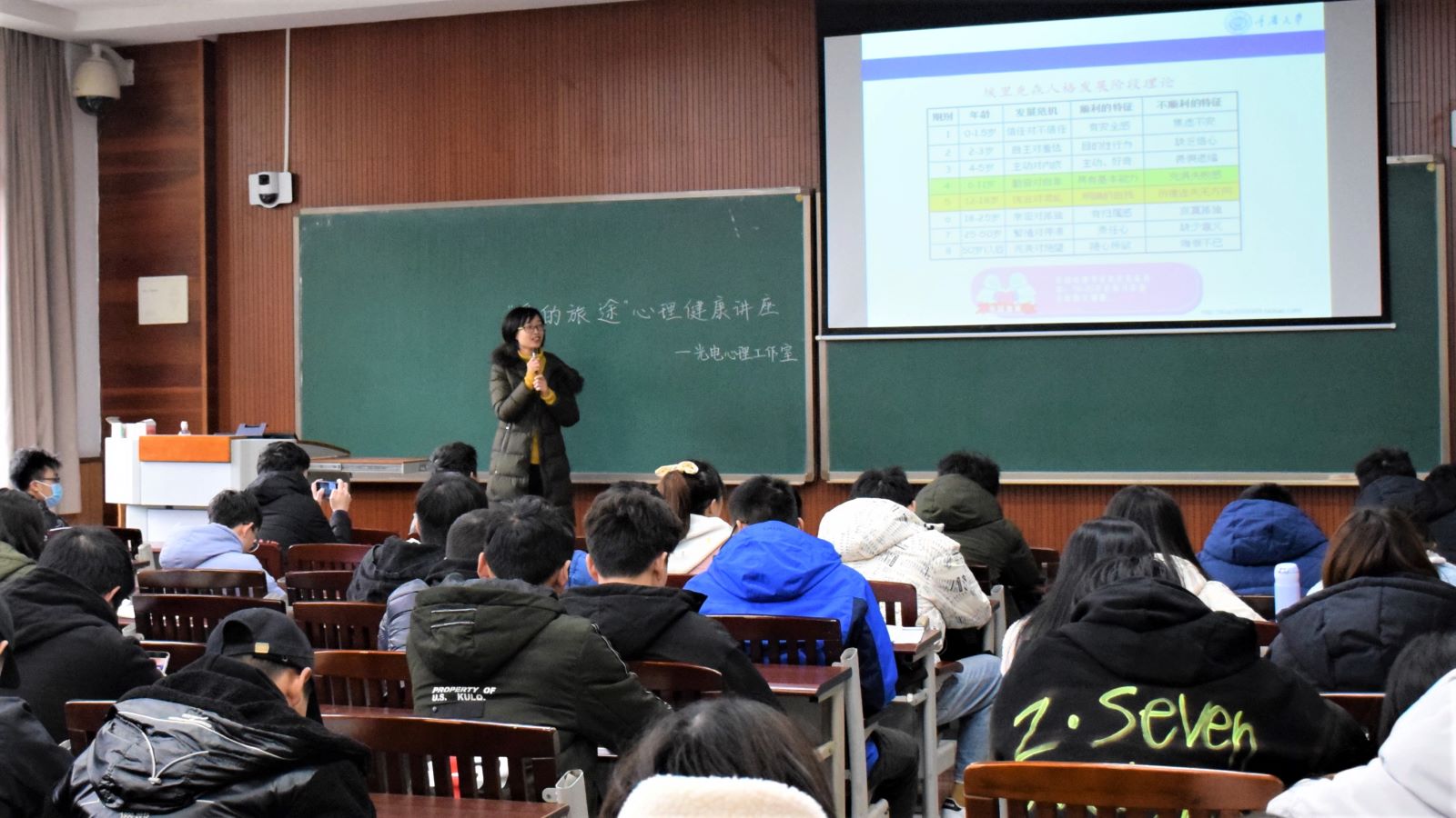 以“爱的旅途”为主题的心理健康讲座于2020年12月19日星期六下午14.30在威廉希尔williamhill官网虎溪校区第一教学楼D1136教室举行。本次讲座主讲人为西南大学应用心理学硕士、威廉希尔williamhill官网心理健康教育与咨询中心专职心理教师、威廉希尔williamhill官网心理健康教育与咨询中心心理咨询师、重庆市第十一人民医兼职心理咨询师、重庆市精神卫生中心重庆市医学心理中心专职心理咨询师潘凤。