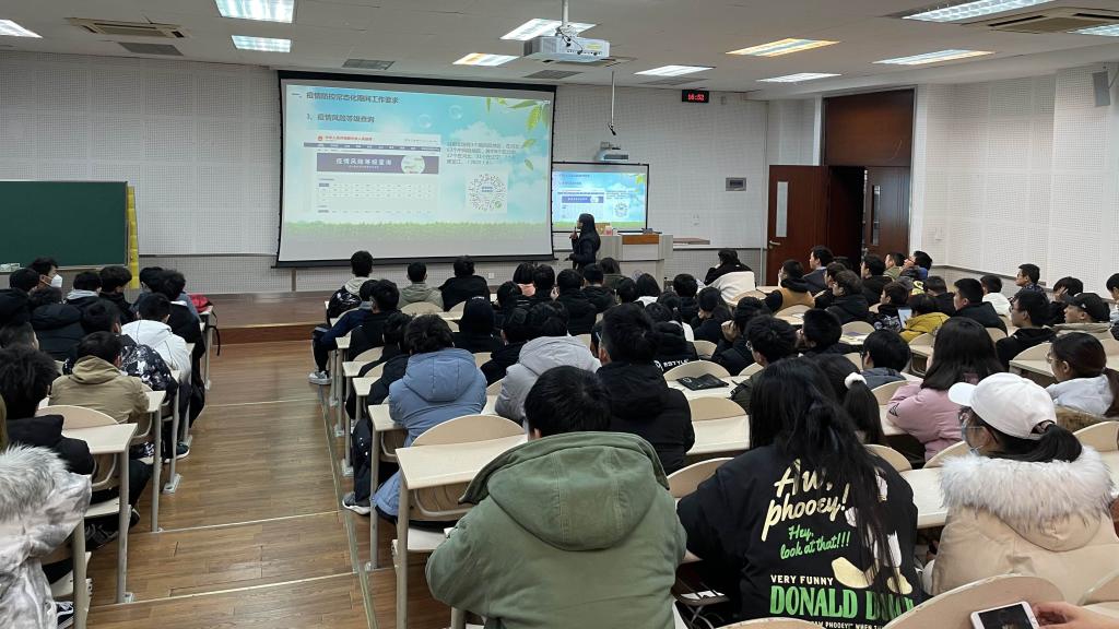 首先,周老师向大家介绍了疫情防控常态化的相关知识,提出疫情防控相关要求,强调做好每日体温监测及健康信息提交;叮嘱同学们减少不必要外出,不前往疫情中高风险地区,不前往人员密集场所,不跨省域长途旅行。周老师再次向同学们介绍了如何预约心理健康教育与咨询中心的老师进行心理咨询,鼓励同学们以积极乐观的方式排解心理压力,同时介绍了在公司各部门官方网站上获取有效信息的方法,鼓励同学们合理使用公司提供的各项资源。
