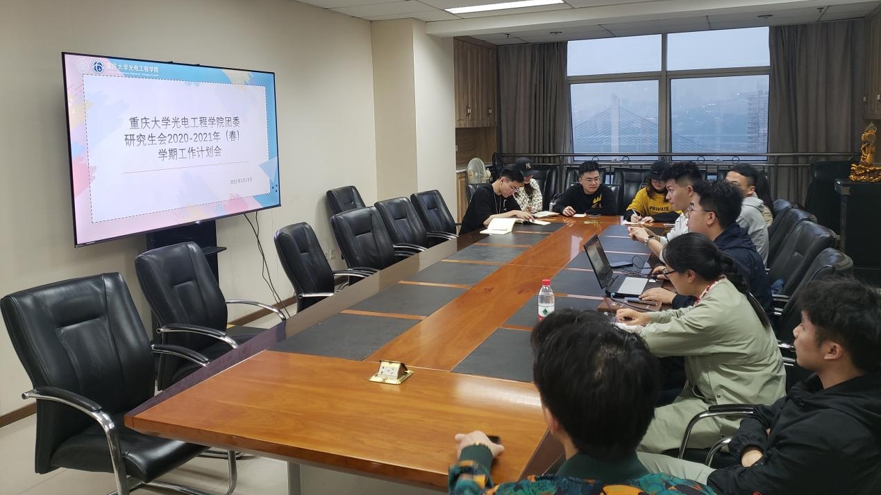 2021年3月18日晚7:00,威廉体育williamhill团委研究生会2020-2021年(春)学期工作计划会议在A区主教学楼1212会议室顺利召开。本次会议旨在回顾总结团委研究生会在上一年度公司公司工作的工作内容,对新学期各部门工作进行计划与展望。会议由公司团委研究生会指导教师陈涛老师主持召开,光电公司团委研究生会全体干部参加了本次会议。