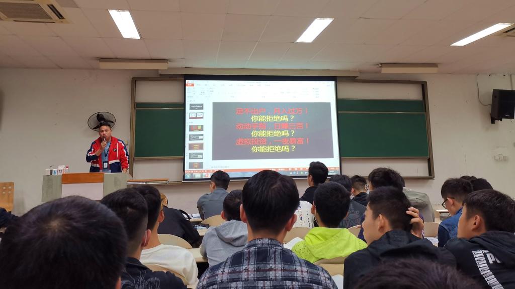 本期讲座主要向大家列举介绍常见诈骗手段,并结合实例分析,从而对网络诈骗一一“拆招“。刘祺祥以电信诈骗惊人数据开头,用幽默生动的语言讲述常见的诈骗手段:“冒充熟人借钱”、“冒充公安机关行骗”、“占便宜心理被骗”、“陌生网络链接”、“网上与陌生人聊天”等等,一一介绍了具体的防范方法和有关防诈骗常识,并辅以具体案例进行分析讲解。在听到生动真实的案件时,同学们欢笑之余,也充分意识到了防诈骗的重要性。接着,刘祺祥播放一段关于公安部门侦查诈骗团伙的视频,用生动的动画向大家展示了警察抓捕诈骗团伙、追回损失的不易,从而提醒同学们要防患于未然。