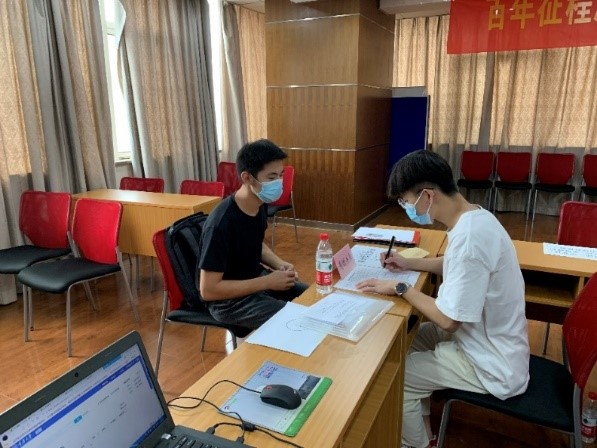 新生报到前一天,工作人员到场参加服务培训、准备相关材料、查验手续和准备防疫物资,以饱满的热情,期待着与新生见面。