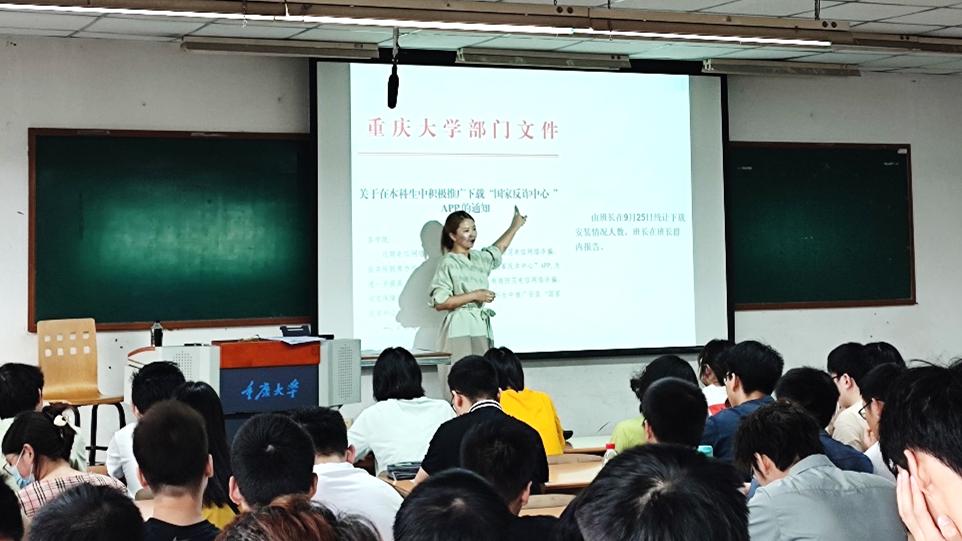 首先罗老师通报了公司关于中秋节的管理通知,要求师生员工在渝在校过节,坚持“非必要不离校”,严格执行离校请假审批手续。并针对即将到来的中秋、国庆双节期间的安全问题,开展“防诈与安全教育”工作,引导全体同学下载国家反诈中心app并开启应用。