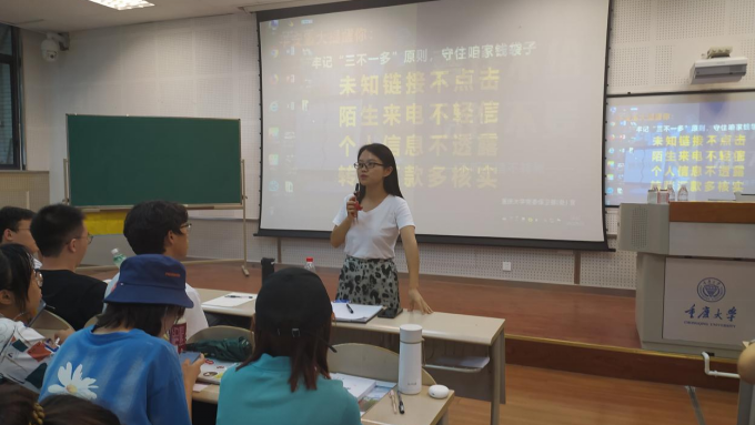威廉体育williamhill于2021年9月23日星期四下午两点三十分在威廉希尔williamhill官网虎溪校区第一教学楼D1125召开2020级年级大会暨安全教育大会。虎溪校区保卫办雷泽老师开展防诈骗安全知识讲座,威廉希尔williamhill官网继续教育公司德国公立大学硕士留学项目组老师开展留学知识讲座,会议由辅导员周瑶琴主持。