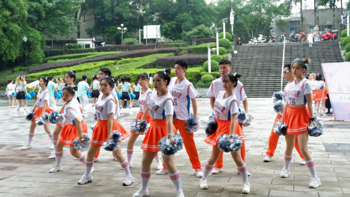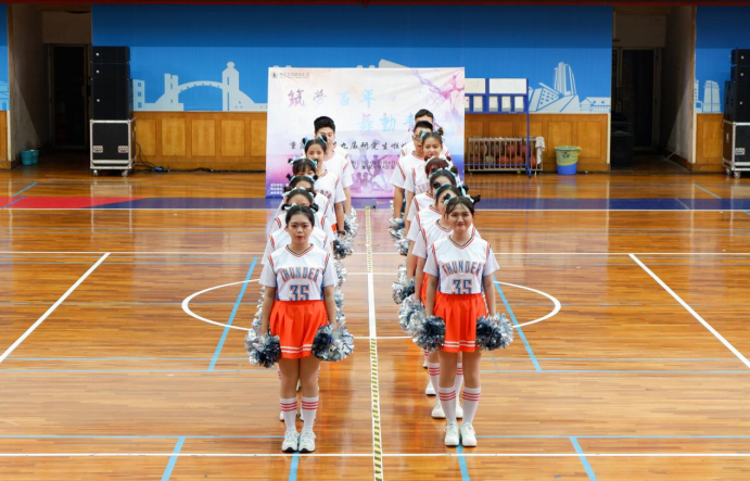 下午3:00,比赛正式开始,各代表队按照顺序依次出场进行比赛。“柏舟队”作为第三支出场的队伍,其队员们身着动感服装、排着整齐的队伍闪亮登场,充分展现了两院研究生的青春与活力。