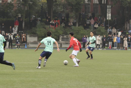 13:25分下半场比赛开始,土木公司发动的猛烈攻势均被光电公管后卫化解。比赛开始60分钟,光电公管10号球员凭借个人速度成功抢断对方后卫,将球传给前锋。前锋射门可惜被门将扑出。足球在绿茵场上来回纷飞,仿佛无形的手时刻拨动着观众们的心弦。