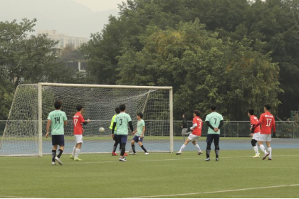 比赛13分钟,光电公管联队打破僵局。中场精准长传,前锋在禁区接到球后果断传中,11号球员接到球一脚破门,拿下比赛首球。光电公管联队1:0暂时领先。土木公司毫不示弱,立即展开反击。比赛15分钟,土木前锋大脚抽射进球,将比分扳平为1:1.