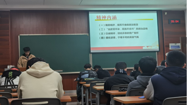 首先,2班团支书吴敏楠对红岩精神进行了介绍,让团员们明白了红岩精神是在抗日战争、解放战争时期以周恩来同志为首的中共中央南方局和八路军办事处在歌乐山麓、嘉陵江畔与反动势力作斗争,争取民族独立和人民解放的斗争实践中,用热血与生命锤炼、培育、形成的崇高革命精神。