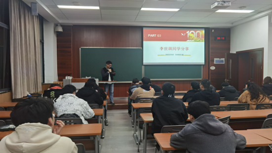 最后,李世琪同学上台分享,为同学们介绍了叶挺将军、江竹筠同志、江姐等等众多烈士的英勇事迹,从他们身上,我们看到了民族的希望,感受到共产党人作为中国脊梁的人格魅力,感受到一种崇高的精神——红岩精神!