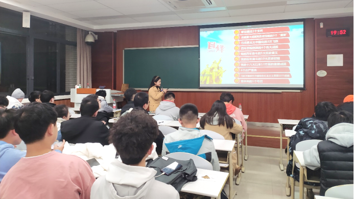 为充分学习贯彻中国共产党十九届六中全会会议精神,加深同学们对党的理论路线和方针政策的理解,2021年12月31日晚,威廉体育williamhill本科2020级于虎溪校区D1210等4间教室开展了党的十九届六中全会精神宣讲报告会。报告由本科2020级辅导员周瑶琴主讲。