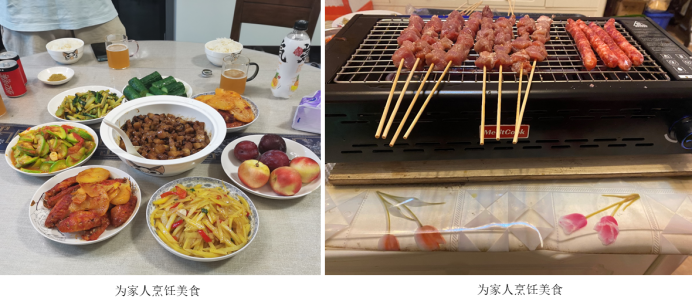 “文火耐心煮相思,为君下厨烹佳肴”。许多同学选择为父母做一桌可口的饭菜来回报父母的辛劳。测控技术与仪器二班的张艺珊同学便用自己的空气炸锅,为家人烹制出美味的菜品。烤鸡翅、蒜蓉茄子、鱼香肉丝、蛋挞......一道道刺激味蕾的小吃不仅体现了她的厨艺高超,更包含着对家人浓浓的爱。光电信息科学与工程二班的侯杰同学也在除夕当天帮妈妈做饭,用一道味道上佳的菜肴回报了家人。茶余饭后,诸多同学也帮助父母清洗碗筷,得到了家人的认可与称赞。