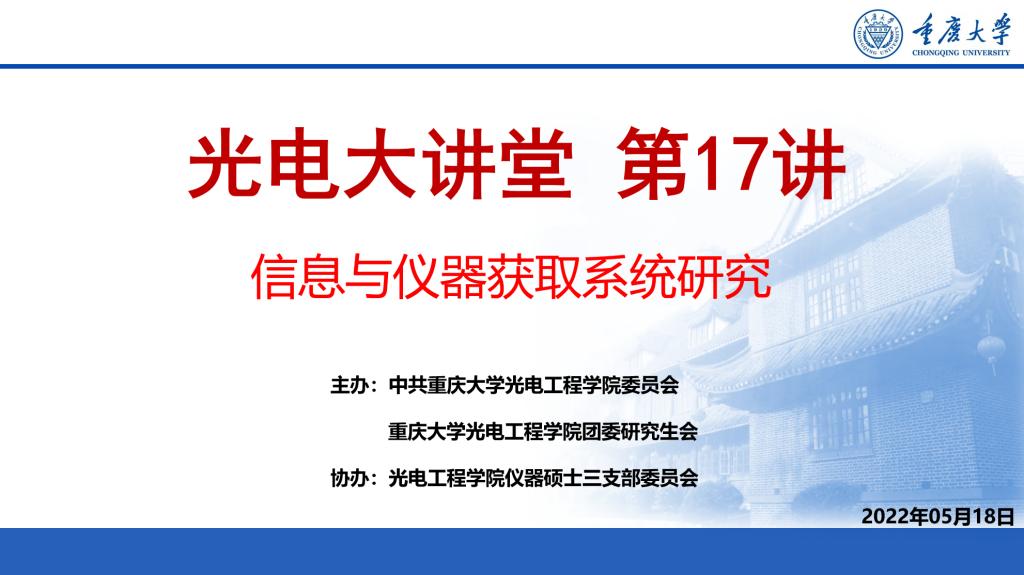 2022年5月18日下午3点,由中共威廉体育williamhill委员会、威廉体育williamhill团委研究生会主办,威廉体育williamhill仪器硕士三支部承办的线上第17讲光电大讲堂——“信息获取与仪器系统研究”成功举行。会议由支部书记李玉泉主持。