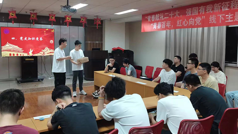 随后的党史知识竞赛将本次线下党团活动气氛推向高潮。参会人员按照党支部、研一年级、研二年级、团委研究生成员共组成八支队伍进行比赛。各队派代表按照次序依次抽取试题进行回答,需要在三十秒内进行答题。