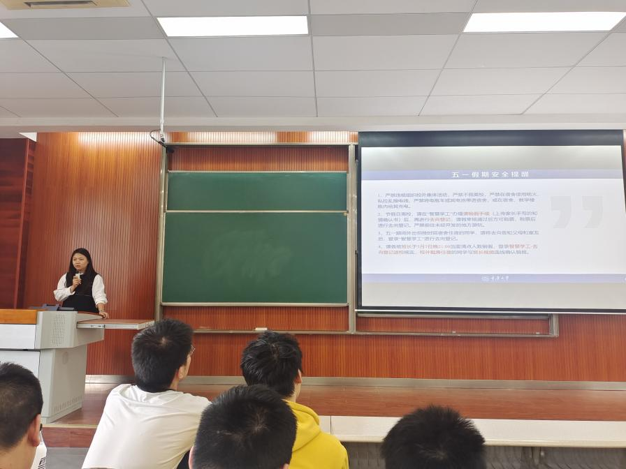 最后,由于五一假期临近,罗老师提醒全体同学遵守校规校纪,离校按规定在智慧学工进行请假申请,外出需完成智慧学工去向登记,按时返校销假。严禁不假离校、外出前往未经开发的旅游地、将电瓶车或其电池带入宿舍楼栋或给其在楼栋区域内充电等,有危害自身或他人安全风险的行为。
