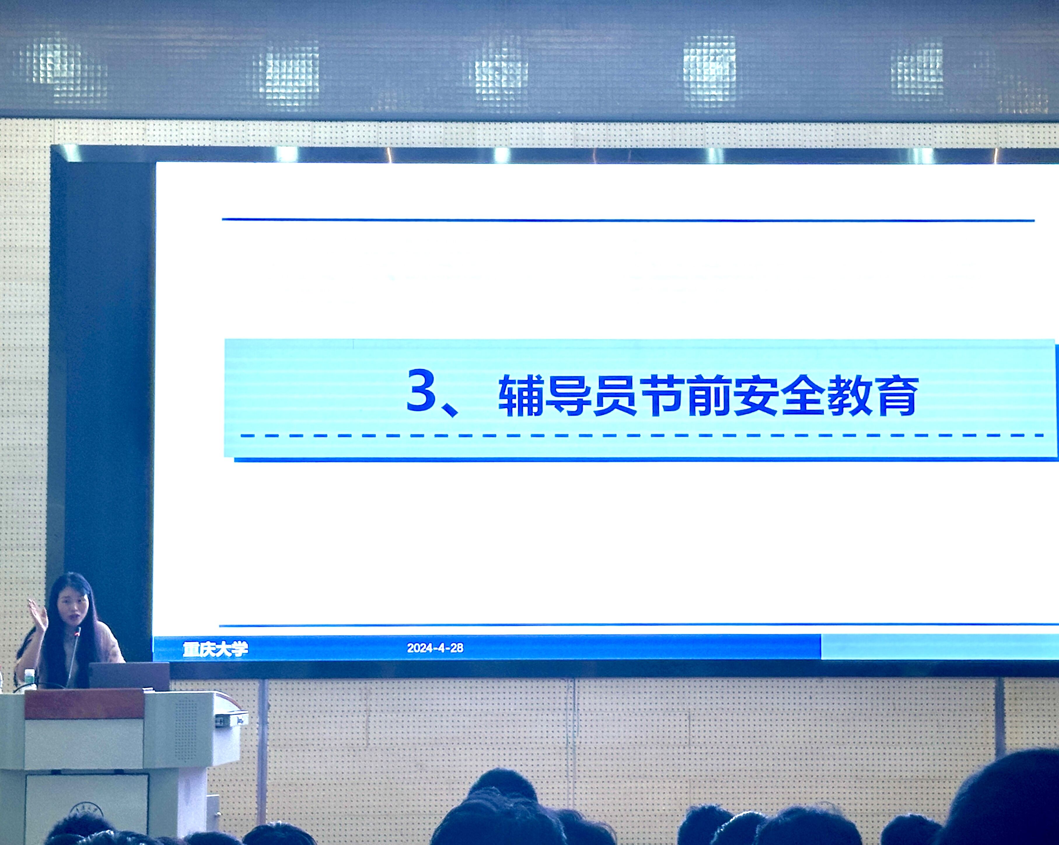 临近五一长假和期末大类分流,为加强员工安全防护意识,排解员工大类分流忧虑、解答员工的疑惑,为员工未来长远发展深造提供更多选择,2024年4月28日下午14:30-16:00,本科生2023级全体员工(电气信息大类1-12班、光电信息科学与工程1-2班)共计400余人在虎溪校区DZ126开展年级大会暨五一节前安全专题教育。