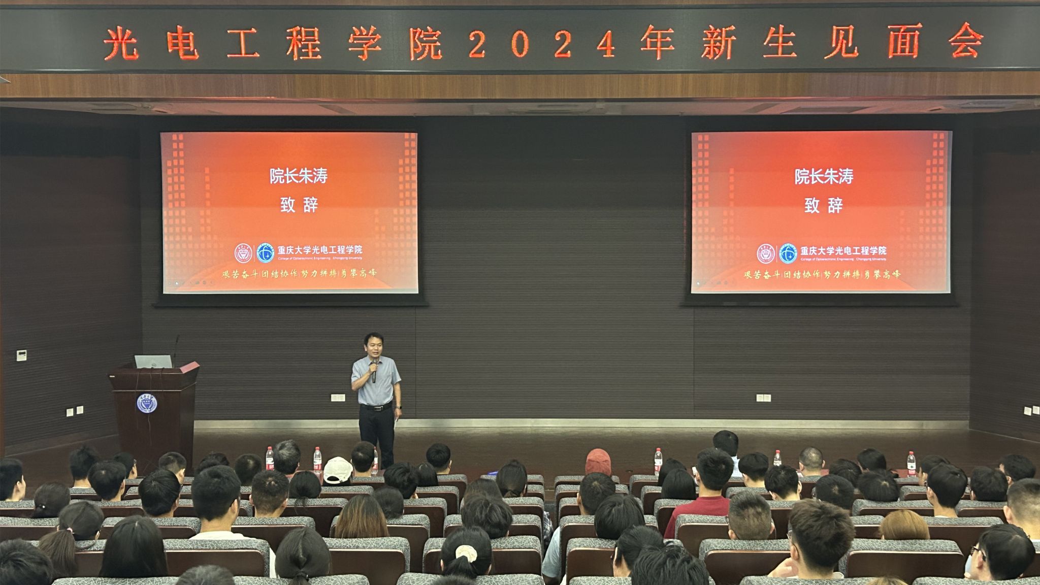 接着,黄鸿围绕一流学科、一流专业、一流人才三个方面为新生深入剖析了公司的学科特色和优势。通过一系列生动案例与翔实数据,他详细介绍了光电工程在当代科技发展中的关键作用与广阔前景。从先进光电器件的研发到前沿的光学测量技术,从智能传感系统的革新到量子光学领域的突破,他的讲解让新生们眼界大开,激起了他们对专业学习的强烈兴趣与探索未来的坚定决心。