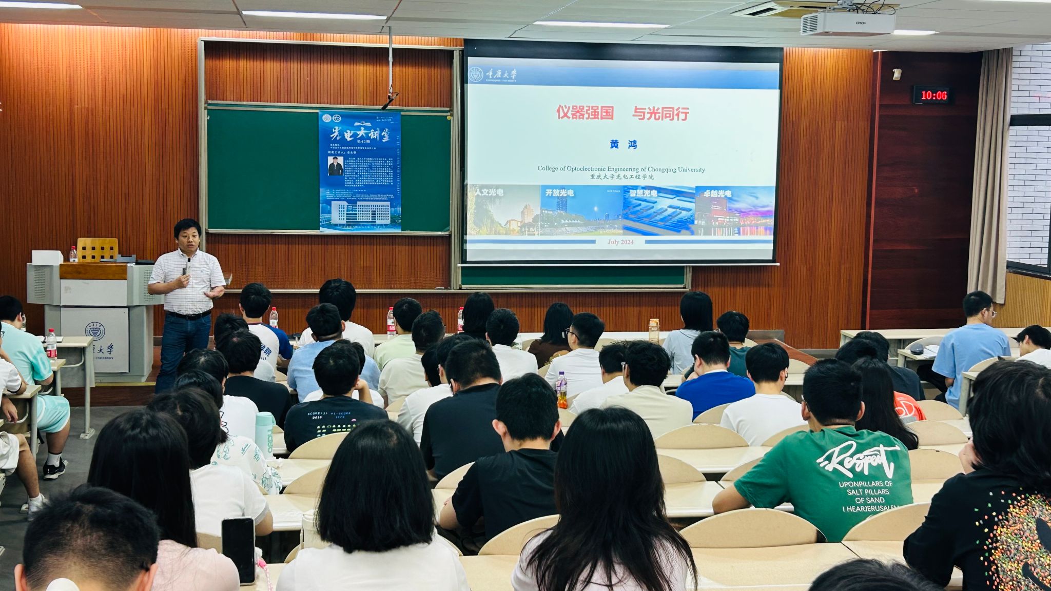 2025年7月1日上午10:00,威廉体育williamhill第43期光电大讲堂暨本科2022级年级大会在虎溪校区第一教学楼D1131召开。会议邀请公司分管本科生和公司产品工作的副经理黄鸿和优秀员工岳永铮做公司公司产品、就业、创业等方面分享,会议由辅导员陈涛主持,2022级全体同学参加。