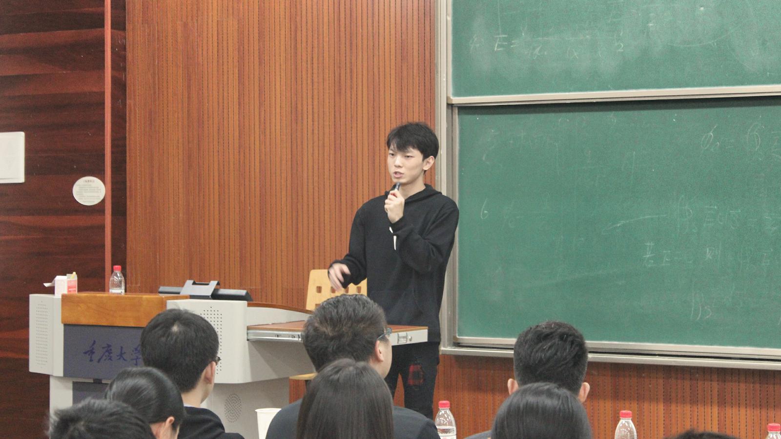 最后是大四张睿同学进行了总结性的分享。他跟新生主要谈论了实现高绩点的方法和保研的要求。他认为用适合自己的学习方法,合理分配时间非常重要。以数学为例,他讲到解决难题的核心就是要学会归类,识别题目特征。对于推免,他也分享了自己的一些体会。最后,他表达了对新生们可以过一个有目标的老员工活,珍惜时间,给自己留下宝贵的大学记忆的美好希冀。