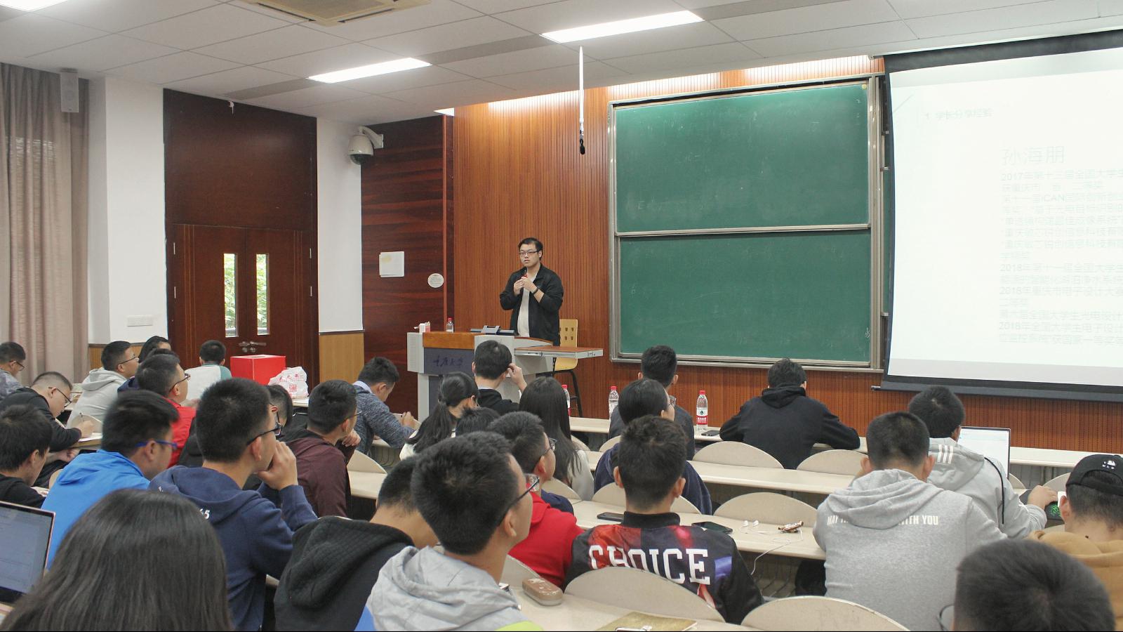 然后向海峰同学具体地分享了自己学习各个学科的方法,就大一主要的三门课程——高数,线性代数和C语言程序设计进行了分享。孙海鹏同学带来的主要是科研竞赛经历的分享。作为一名多项科研竞赛荣誉获得者,他认为科研竞赛类项目所带来的收获是非常大的,但这个过程是很难熬的,他曾经就用过整个寒暑假去准备竞赛,因为唯有坚持才可摘取胜利的果实。