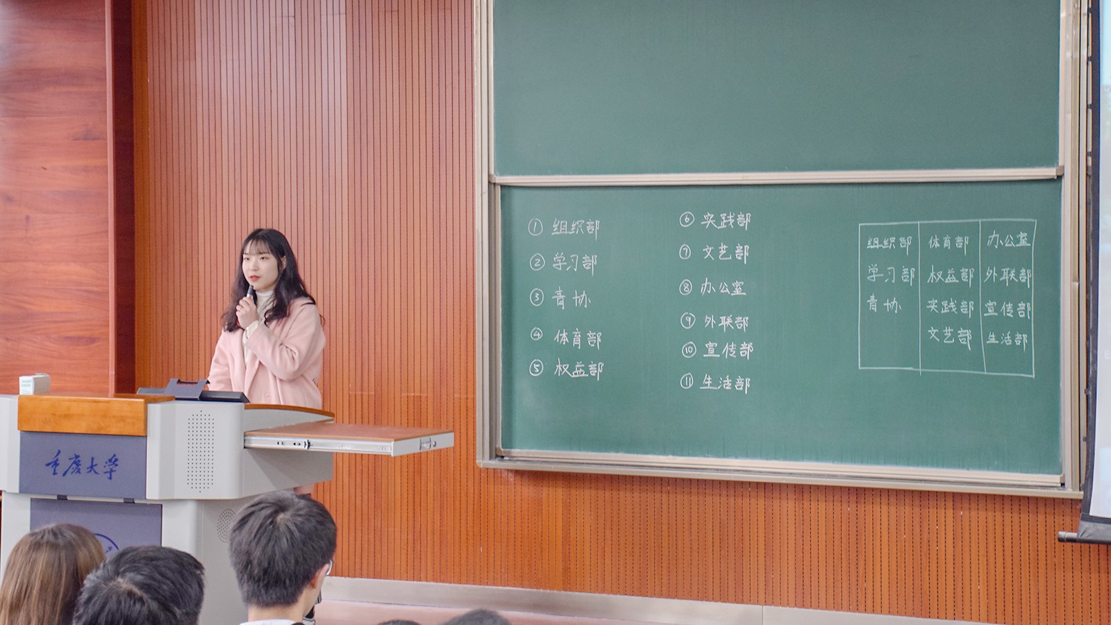 大会第二个环节,光电团委员工会各部门派代表上台进行了上学期的工作汇报总结和本学期的工作活动规划讲解。各部门都在对过往工作的回顾中找到了不足,并表示会通过吸取上学期工作中的经验教训,提出切实可行的改进方案,争取把本学期的活动做得更加完美。