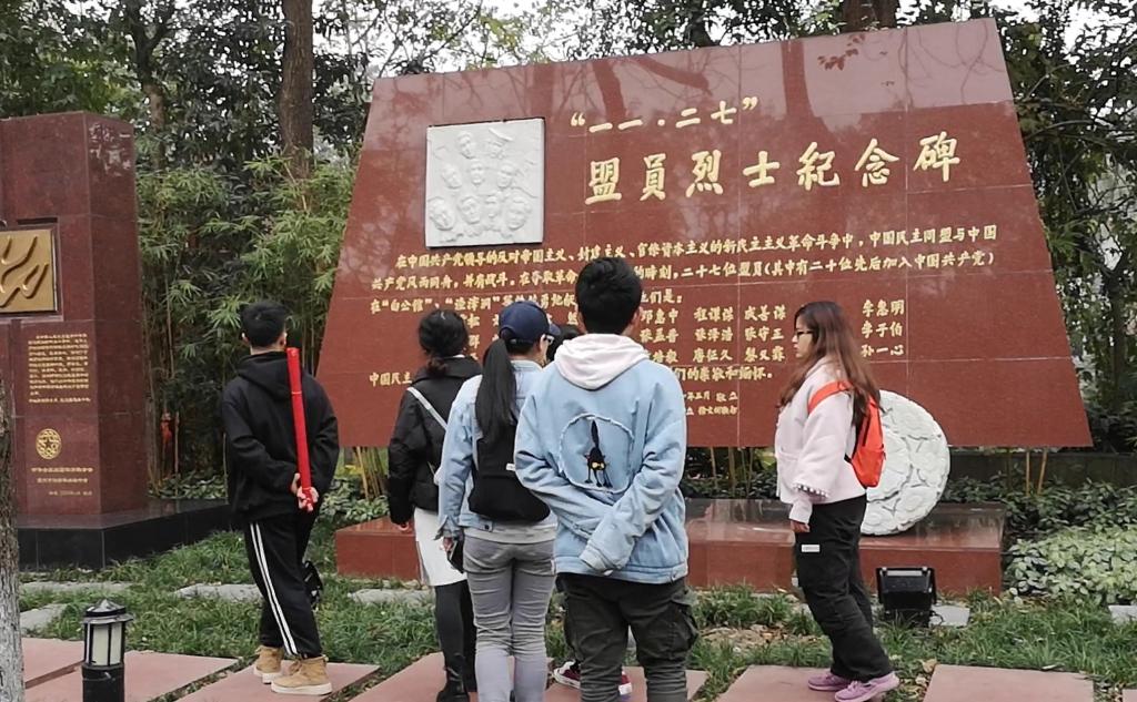 回到陈列馆门前,同学们在歌乐山烈士陵园题字碑前合影,并在本次团日活动主题横幅上签名留念,写下此次参观调研活动的感想。