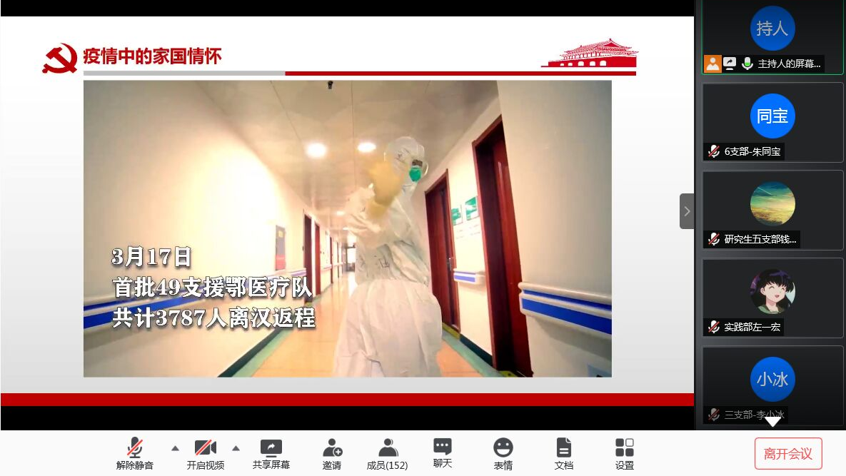接下来,主持人就本次疫情中青年的时代使命和责任担当进行了总结,指出新时代青年应该要想国家之所想,急国家之所急,不只是在抗疫中,更应该是祖国建设的方方面面,为实现中华民族伟大复兴做出青年应有的担当、活力和能量。