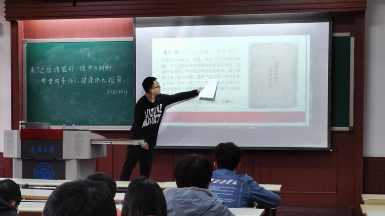 首先,杨吉煜同志向大家进行了名著导读,围绕今天的主题向大家介绍了毛泽东文集中的《关于建立报告制度(一九四八年一月七日)》和《关于目前党的政策中的几个重要问题(一九四八年一月十八日)》两篇重要文章。接着结合城南庄会议从“纪律建设”、“权力统一于中央”、“无纪律无政府状态”三个方面讲述了遵守政治纪律的重要性。