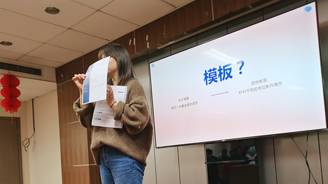 同学们领取了开学提交的简历,简历上罗老师一一批注了修改意见,并现场对部分同学的简历进行了排版、类别、内容、表述方式等方面的举例展示,向同学们讨论分享各自简历中学业成就、组织荣誉、科研经历与专业能力等方面异同点,交流确立对目前一年中还需努力的方向。